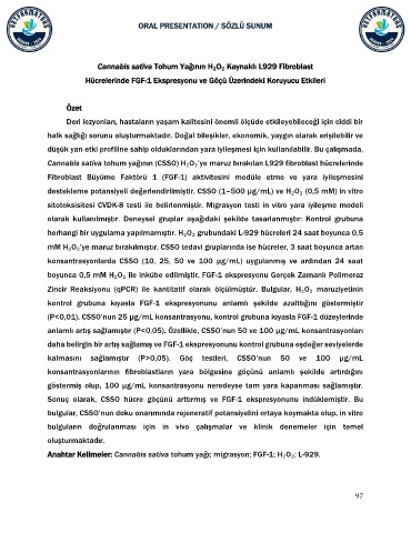 Anahtar Kelimeler: Cannabis sativa tohum yağı; migrasyon; FGF-1; H₂O₂; L-929.