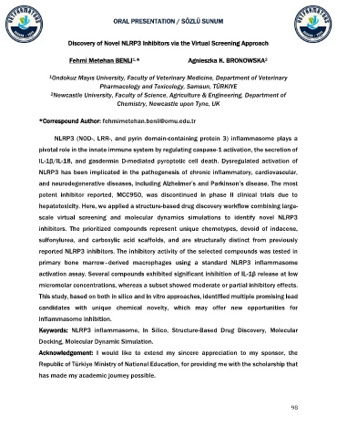 Keywords: NLRP3 inflammasome, In Silico, Structure-Based Drug Discovery, Molecular