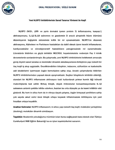 denemelerde sonlandırılmıştır. Bu çalışmada, yeni NLRP3 inhibitörlerini belirlemek amacıyla
