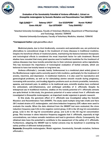 *Correspound Author: yigit.gunes@iuc.edu.tr