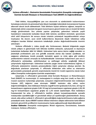 Çalışmada, V. officinalis’in genotoksik etkisi Somatik Mutasyon ve Rekombinasyon
