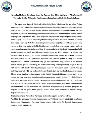 Anahtar Kelimeler: Karacabey Merinosu, melatonin, regulin, triptofan, östrus.