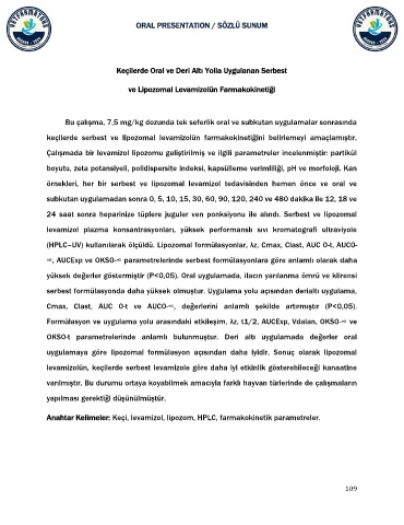 Anahtar Kelimeler: Keçi, levamizol, lipozom, HPLC, farmakokinetik parametreler.