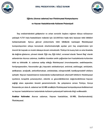 Anahtar Kelimeler: Acorus calamus, Hayvan hastalıkları, GC-MS, Etnofarmakoloji,