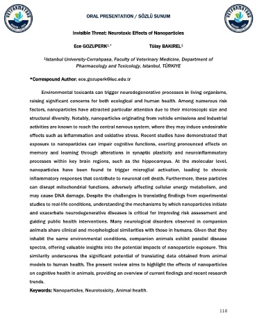 Keywords: Nanoparticles, Neurotoxicity, Animal health.