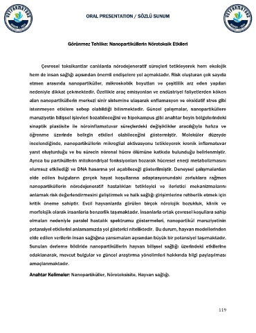 Sunulan derleme bildiride nanopartiküllerin hayvan bilişsel sağlığı üzerindeki etkilerine