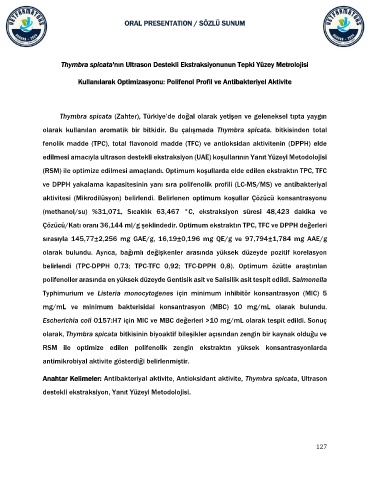 Anahtar Kelimeler: Antibakteriyal aktivite, Antioksidant aktivite, Thymbra spicata, Ultrason