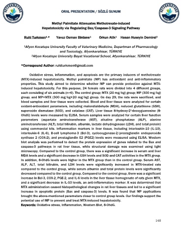 each consisting of six animals (n=6). The control group; MTX (20 mg/kg) group; MP (300 mg/kg)