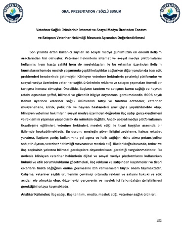 sosyal medya üzerinden veteriner sağlık ürünlerinin reklamı ve satışını yapmaları önemli bir