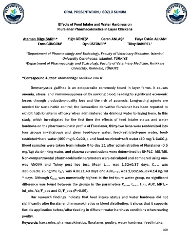 Keywords: Isoxazoles, pharmacokinetics, fluralaner, poultry, water hardness, feed intake.
