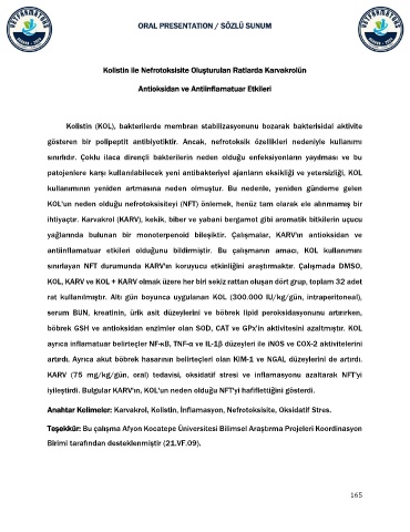 Anahtar Kelimeler: Karvakrol, Kolistin, İnflamasyon, Nefrotoksisite, Oksidatif Stres.