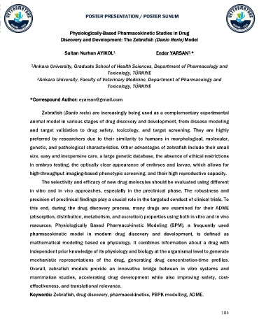 Keywords: Zebrafish, drug discovery, pharmacokinetics, PBPK modelling, ADME.