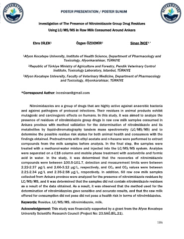 Using LC/MS/MS in Raw Milk Consumed Around Ankara