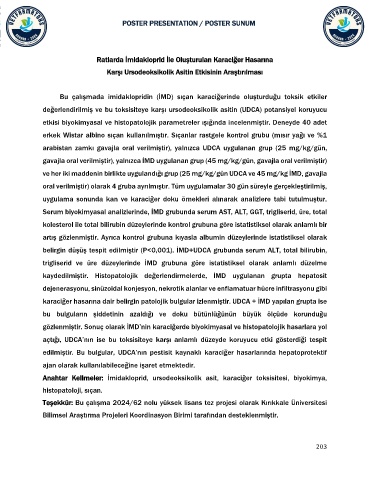 Anahtar Kelimeler: İmidakloprid, ursodeoksikolik asit, karaciğer toksisitesi, biyokimya,