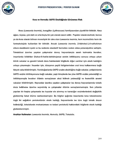 Anahtar Kelimeler: Lawsonia inermis, Hemoliz, G6PD, Toksisite.
