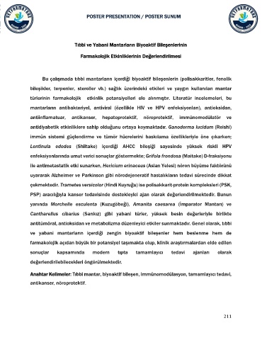 Anahtar Kelimeler: Tıbbi mantar, biyoaktif bileşen, immünomodülasyon, tamamlayıcı tedavi,