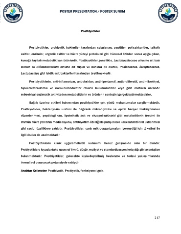 Anahtar Kelimeler: Postbiyotik, Probiyotik, fonksiyonel gıda.