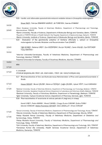 17:20 1 Balıkesir University, Faculty of Veterinary Medicine, Department of Pharmacology and Toxicology, Balıkesir, TÜRKİYE