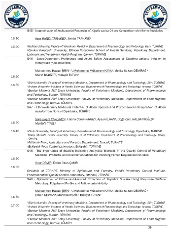 16:20 1 Kafkas University, Faculty of Veterinary Medicine, Department of Pharmacology and Toxicology, Kars, TÜRKİYE