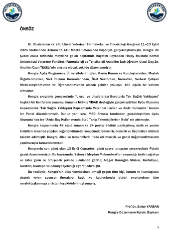 Bu vesileyle, Kongre’nin düzenlenmesinde emeği geçen tüm kişi, kurum ve kuruluşlara;