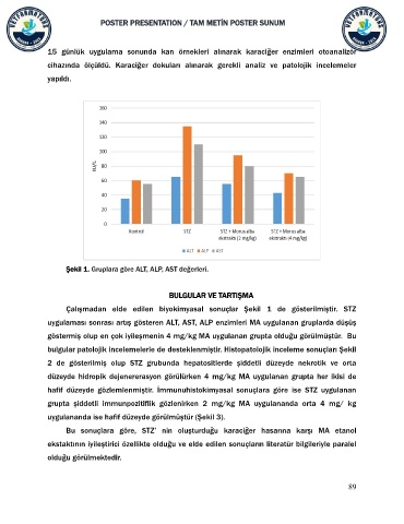 uygulaması sonrası artış gösteren ALT, AST, ALP enzimleri MA uygulanan gruplarda düşüş