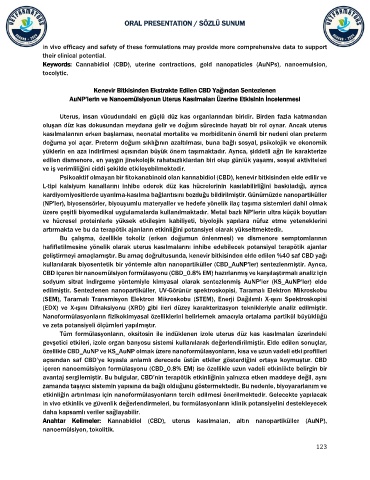 Anahtar Kelimeler: Kannabidiol (CBD), uterus kasılmaları, altın nanopartiküller (AuNP),