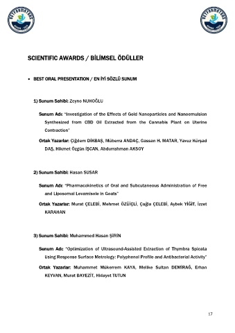 SCIENTIFIC AWARDS / BİLİMSEL ÖDÜLLER
