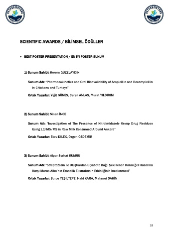 SCIENTIFIC AWARDS / BİLİMSEL ÖDÜLLER