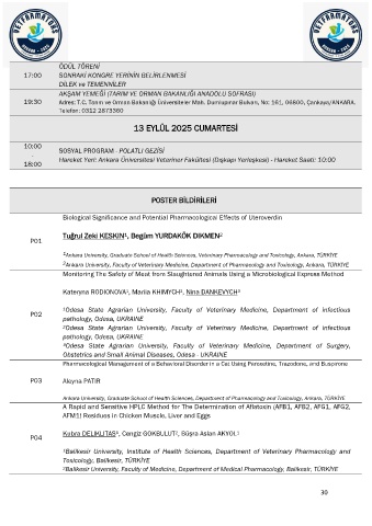 18:00 Hareket Yeri: Ankara Üniversitesi Veteriner Fakültesi (Dışkapı Yerleşkesi) - Hareket Saati: 10:00